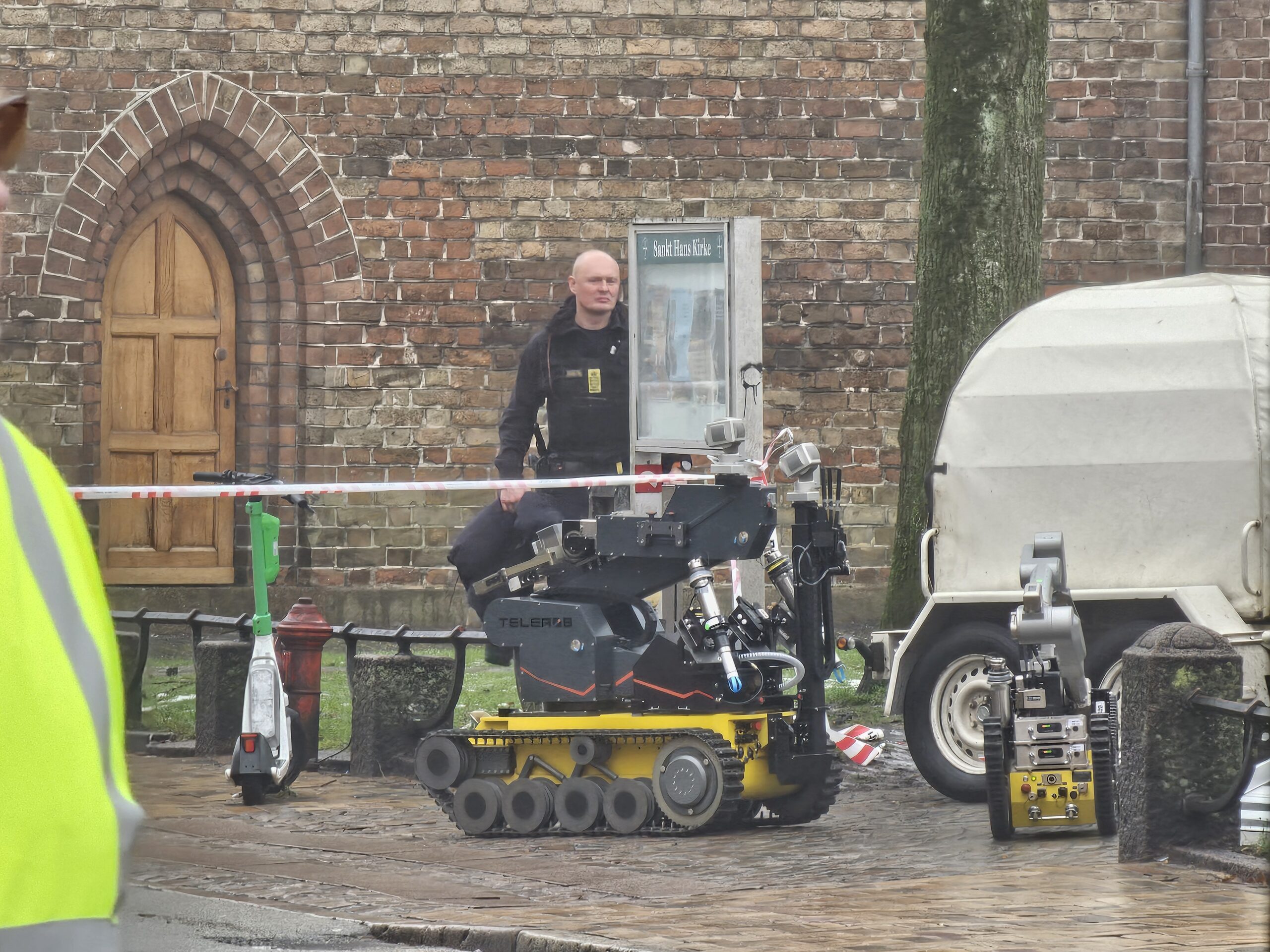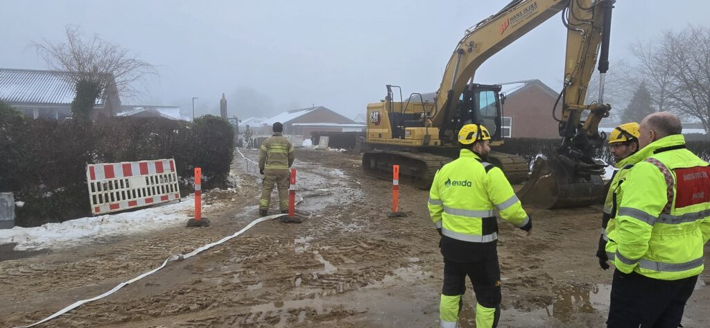 På billeder fra Presse-fotos.dks udsendte ses det, at både brandvæsen og politi er tilstede i området, hvor to kraner tilsynladende har været i gang med noget gravearbejde.