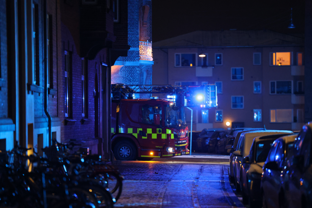 Udrykningskøretøjer fra brandvæsnet ankom sent fredag aften til Assensgade i Aarhus.
