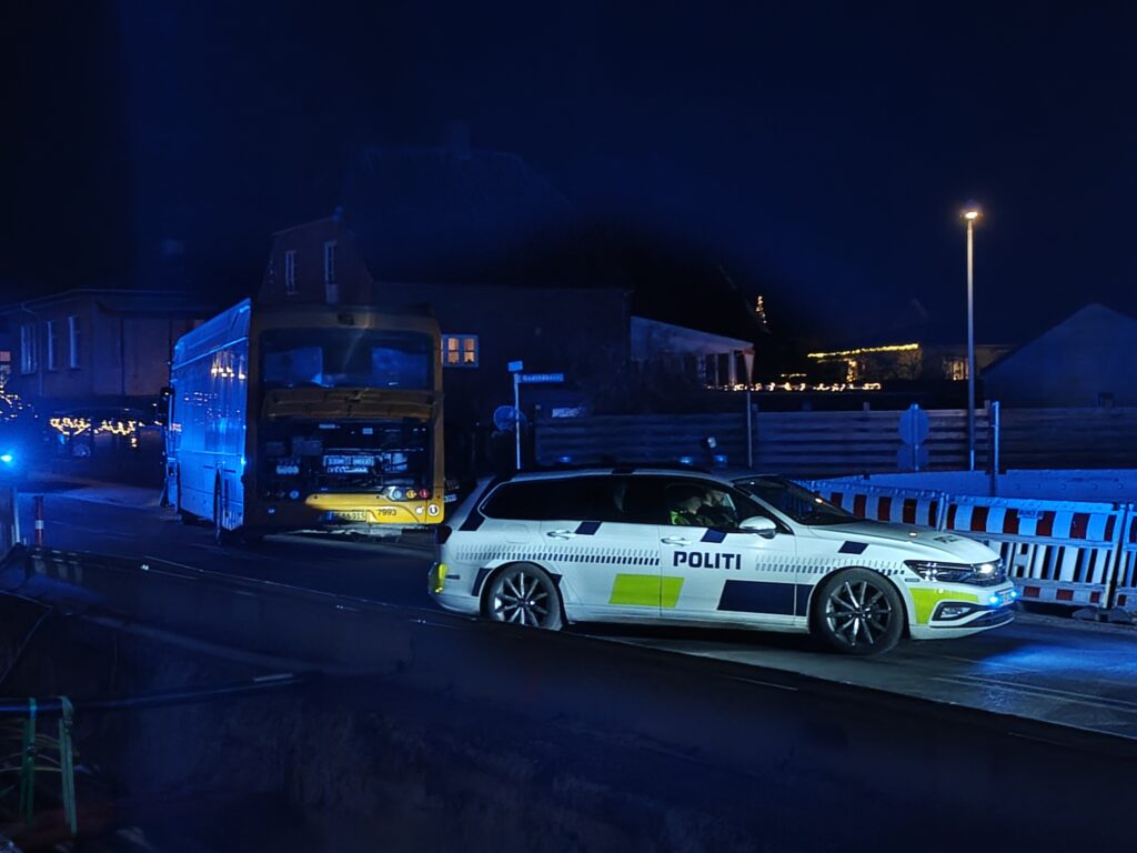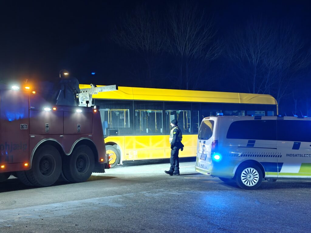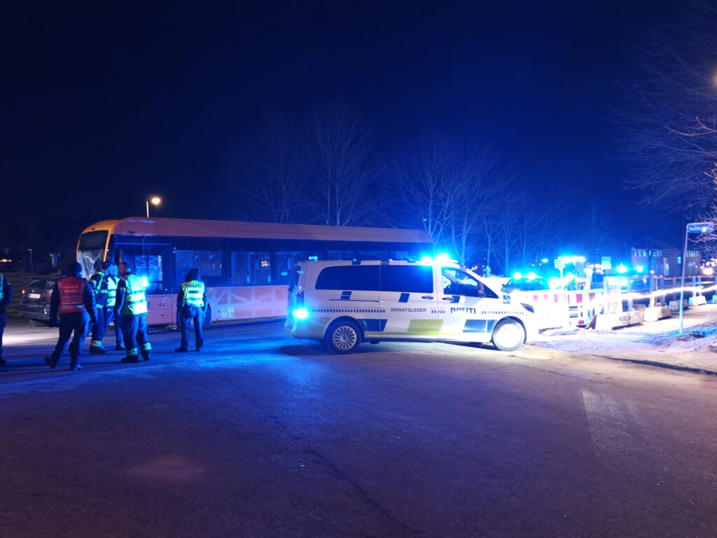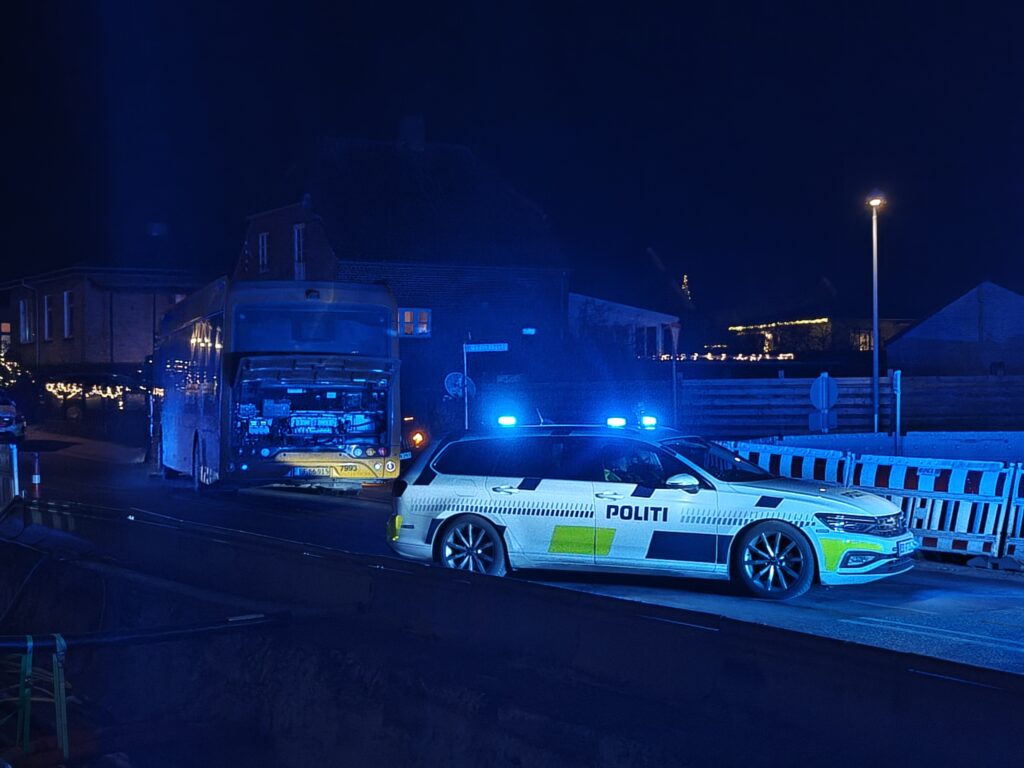 Politi og redning er fremme ved ulykkesstedet, hvorfra billederne viser alvorlige scener med stor materiel skade på især bussen.
