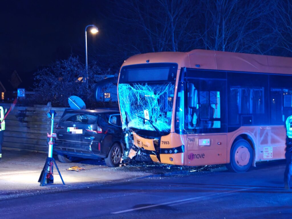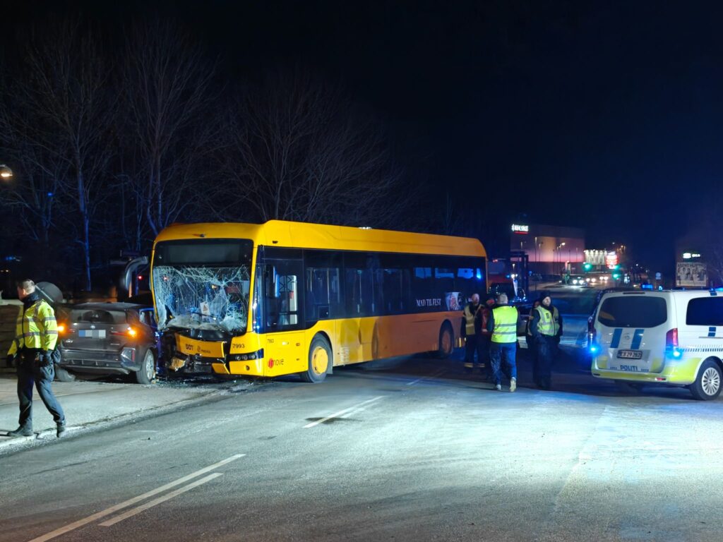 Tirsdag aften har en voldsom ulykke fundet sted, hvor en bus og en personbil er braget sammen.