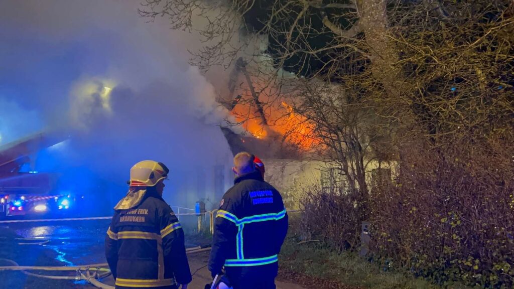 Denne nat gik det desværre ud over et hus med stråtag, hvor ilden overtændt huset, så det ikke stod til at redde.