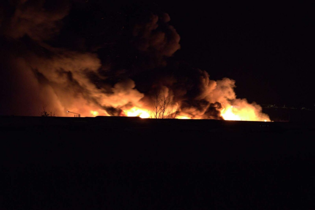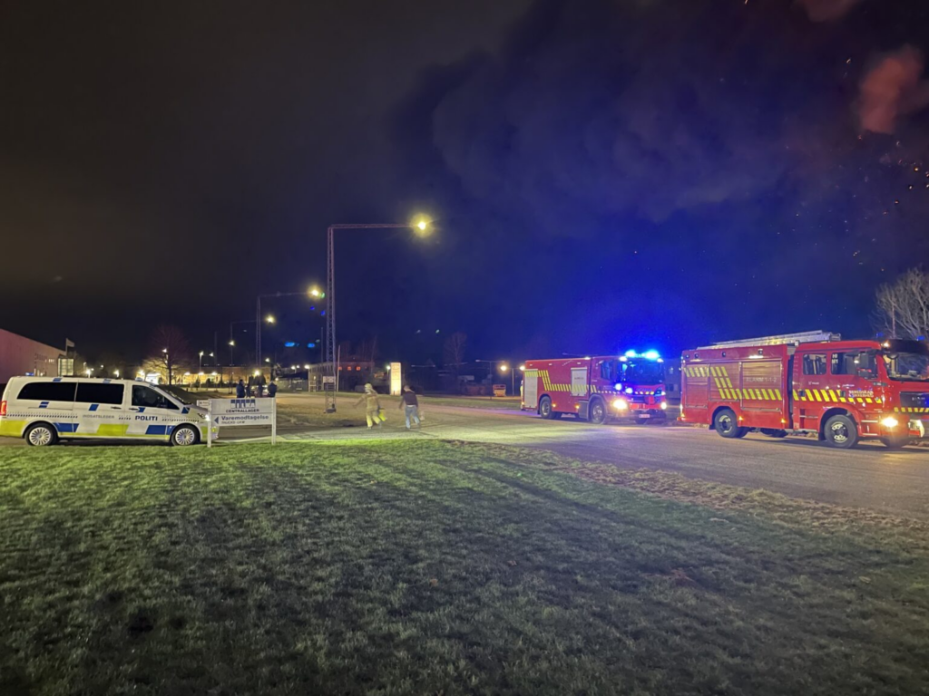 Industribygningen, der fungerer som lager for en række virksomheder, ligger på Jens Olsens Vej. Politiet anslår lageret til at være 5000 kvadratmeter stort.