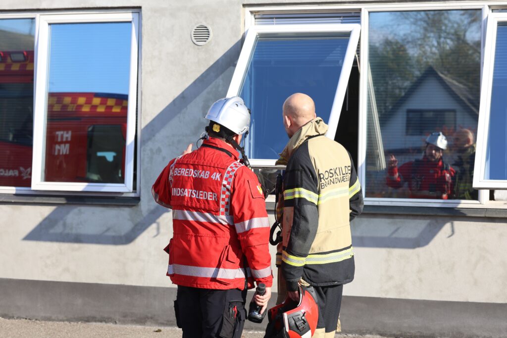 Brandvæsenet har været oppe på bygningens tag, hvor branden umiddelbart er opstået.