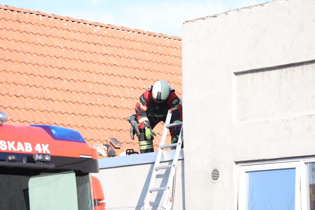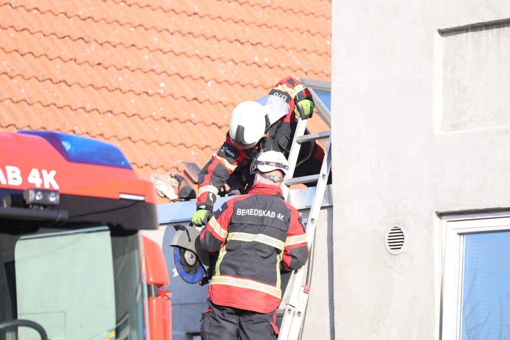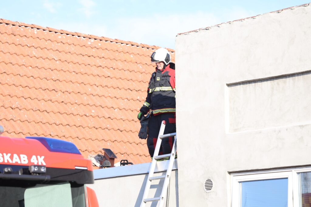 I den forbindelse har brandpersonalet været oppe på et tag, hvor branden ifølge Presse-fotos.dk’s udsendte umiddelbart opstod.