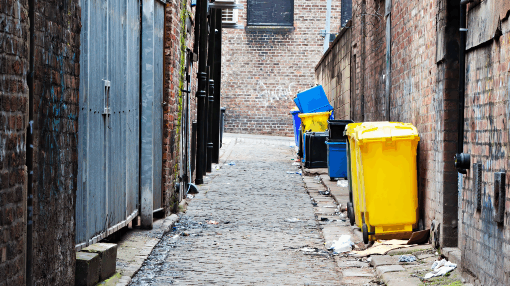 Her observerede kvinden en større gruppe mænd, der stod forsamlet i en gyde.