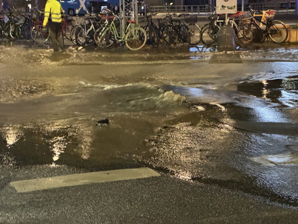 Natten til fredag er der opstået en dramatisk situation ved en rutebilstation, hvor et større brud har fået store mængder vand til at strømme ud.