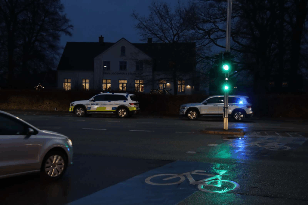Fremme på uheldsstedet er mindst tre politibiler, mens også en akutlægebil og en ambulance har været kaldt ud.