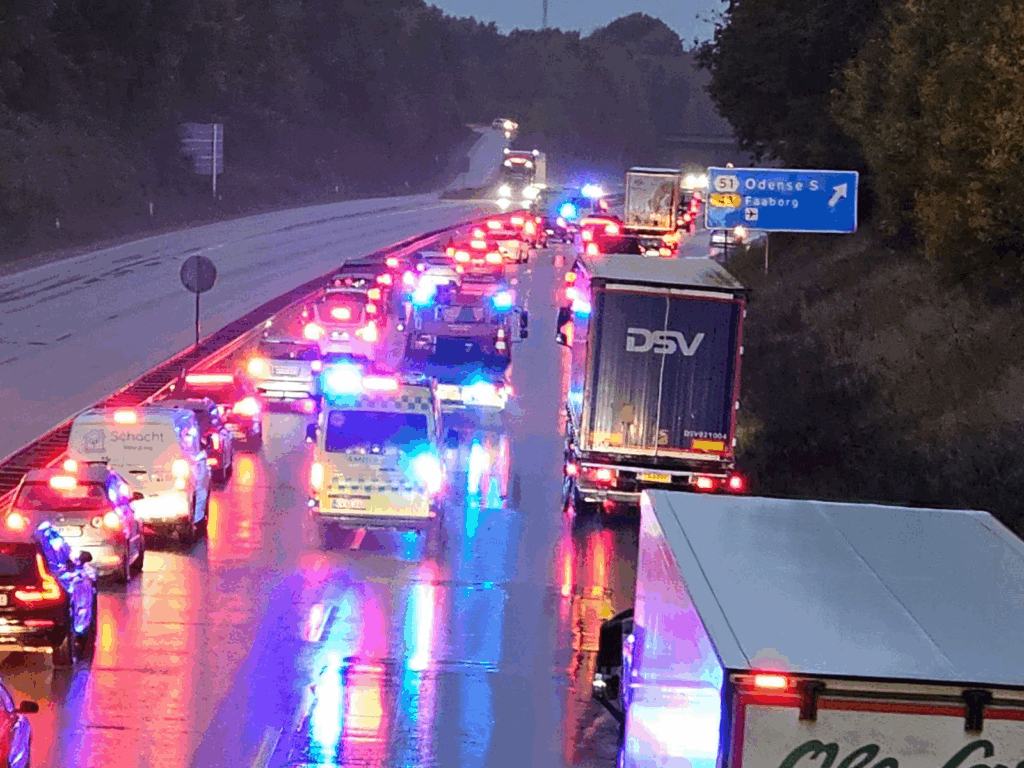 Færdselsuheldet er sket på E20 Fynske Motorvej i vestgående retning mellem <50> Odense SØ og <51> Odense S.