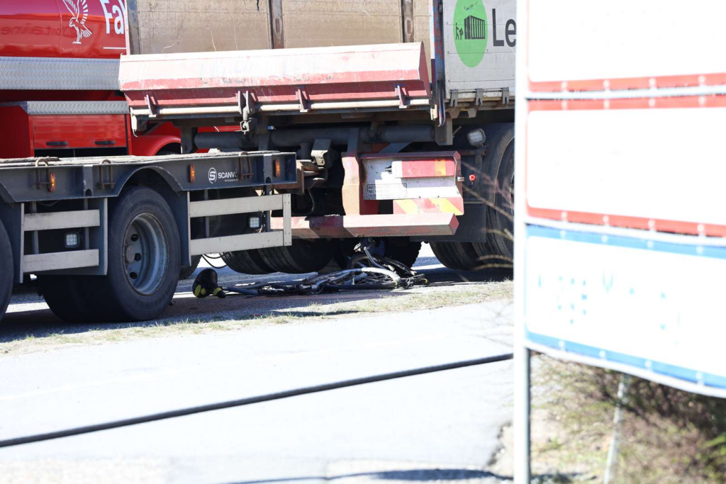 Tidligere fortalte Presse-fotos.dks udsendte, at cyklisten lå under lastbilen med et hvidt lagen over sig.