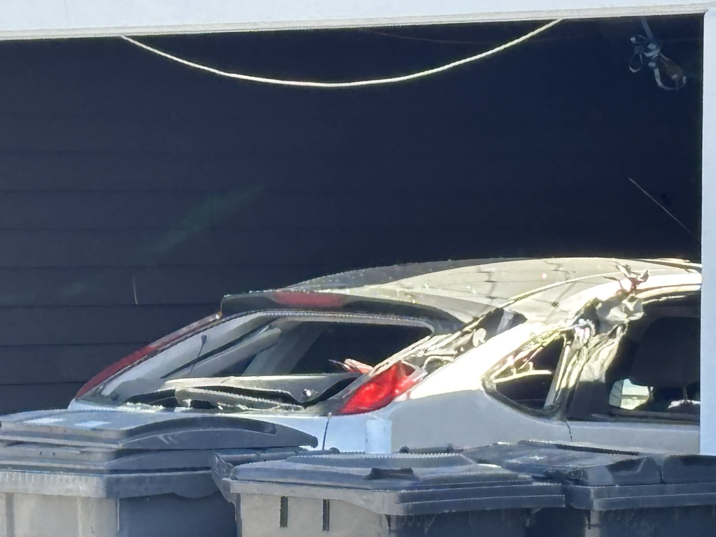 Billeder fra stedet viser, at en bil blandt andet er ramt af eksplosionen. Køretøjets vinduer er blæst ud, ligesom der ses skader selve bilen.