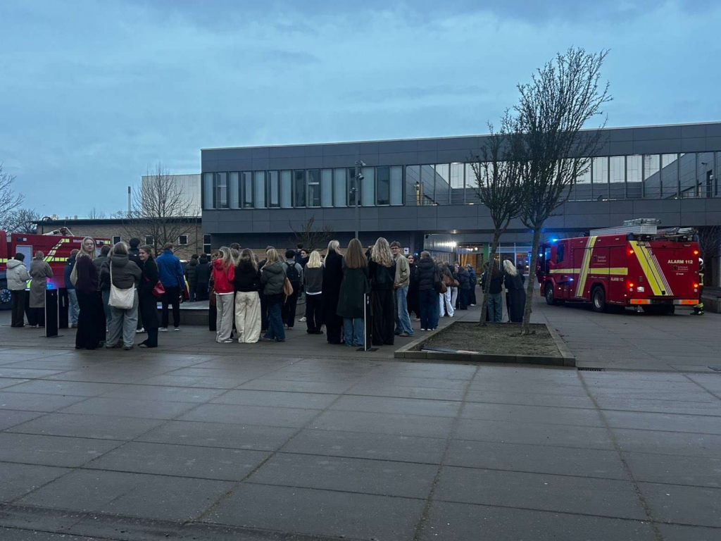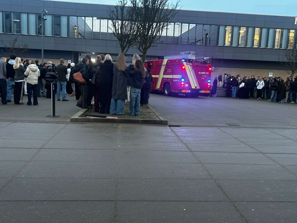 De er allesammen blevet evakueret fra gymnasiet, da brandalarmen gik fredag morgen.