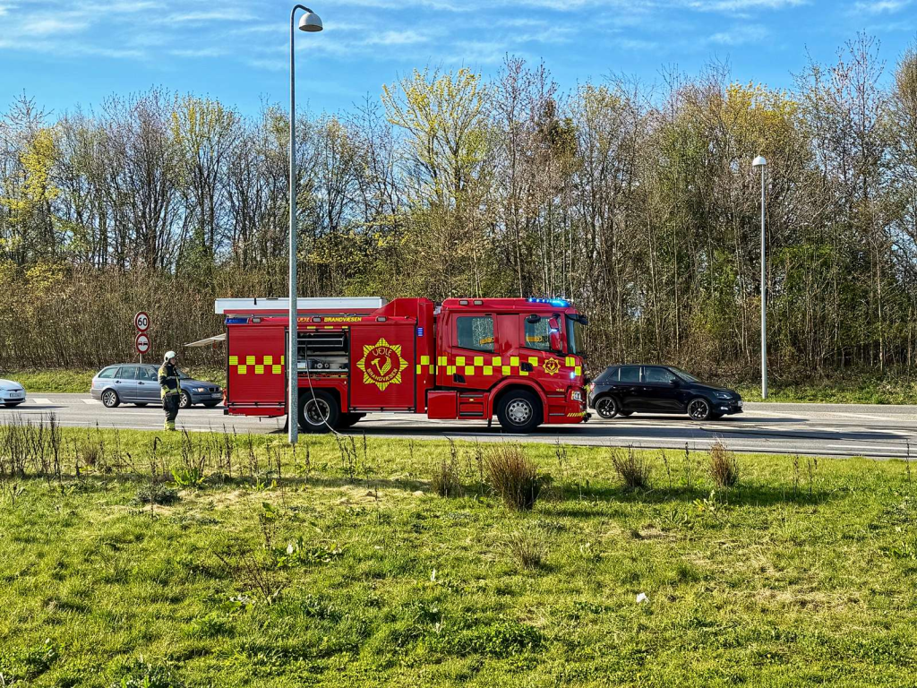 Bilen gik i brand på Grønlandsvej i Vejle, hvor der stadig er trafikale problemer.
