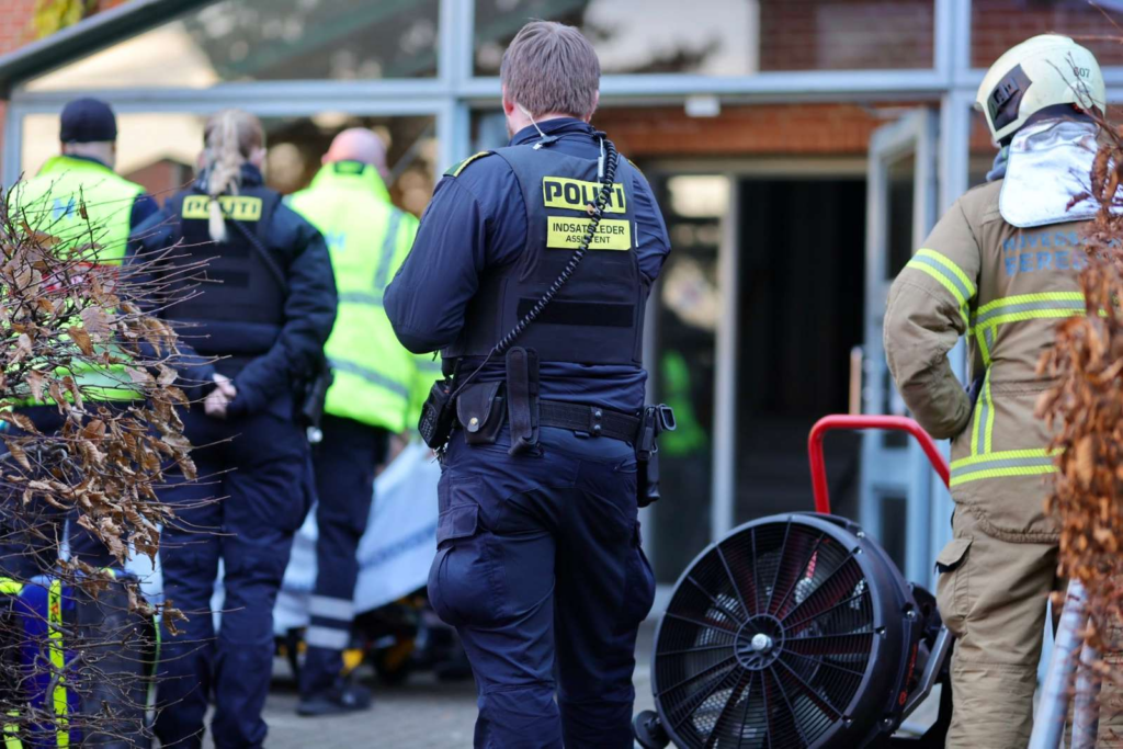 Billeder fra stedet viser onsdag formiddag, at lægepersonale arbejder sammen med betjente og brandfolk omkring en etagejendom, hvor blandt andet en ambulancebåre gøres klar.