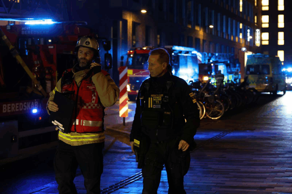 Efter brandfolk har inspiceret højhuset, kan det dog konstares, at alarmen har været falsk, oplyser Københavns Politi.