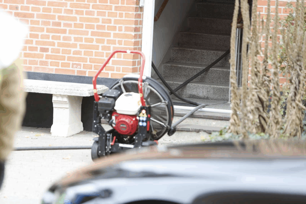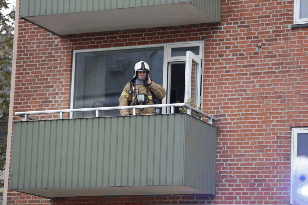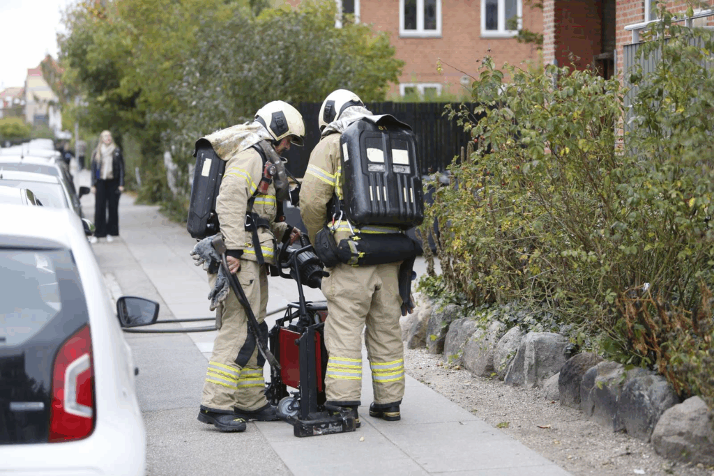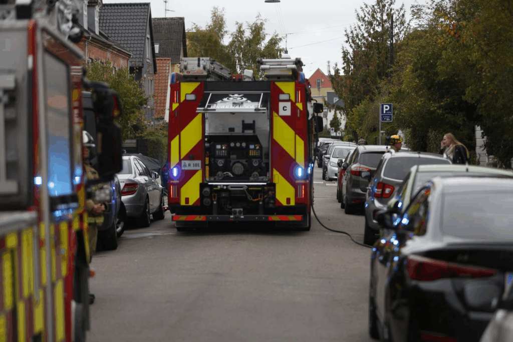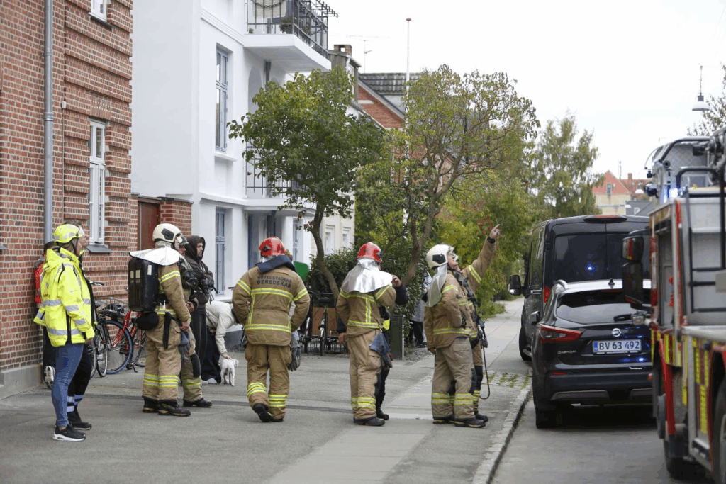 “Da jeg kommer frem holder beredskabet her. Meget indikerer, at de hurtigt har kunne slukke branden i lejligheden, fordi brandvæsenet er i gang med at ventilere ejendommen,” siger Presse-fotos.dks udsendte og tilføjer: