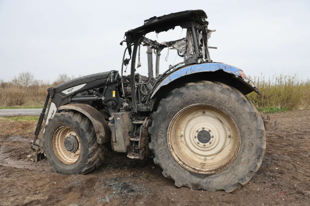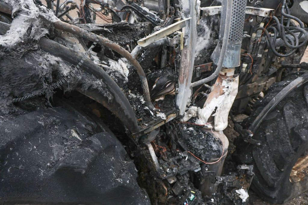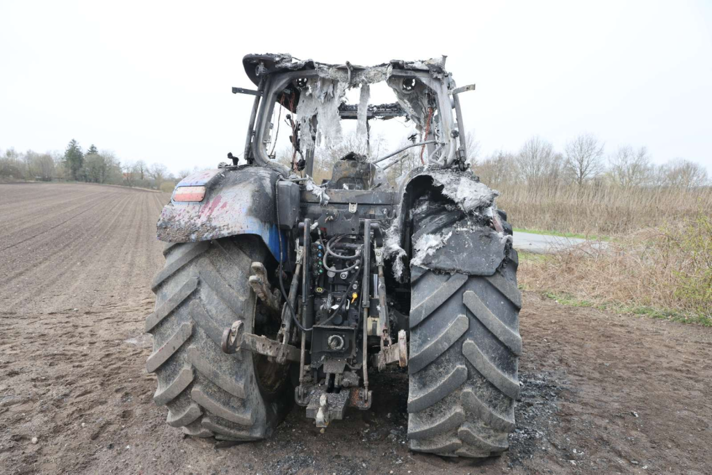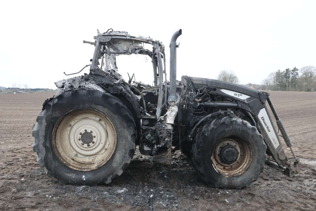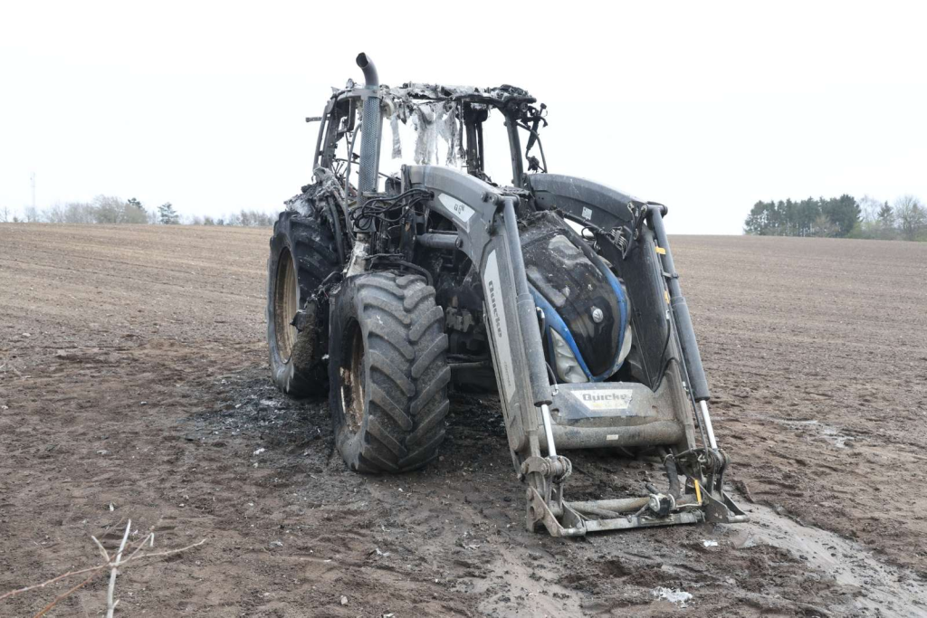 Branden er blevet slukket, men traktoren udbrændte fuldstændig.