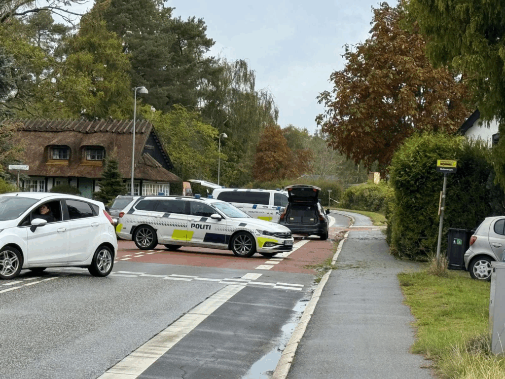 Det er dramatiske scener, der søndag morgen og formiddag foregår omkring en villavej og en mindre grusvej, hvor politiet har arbejdet i timer