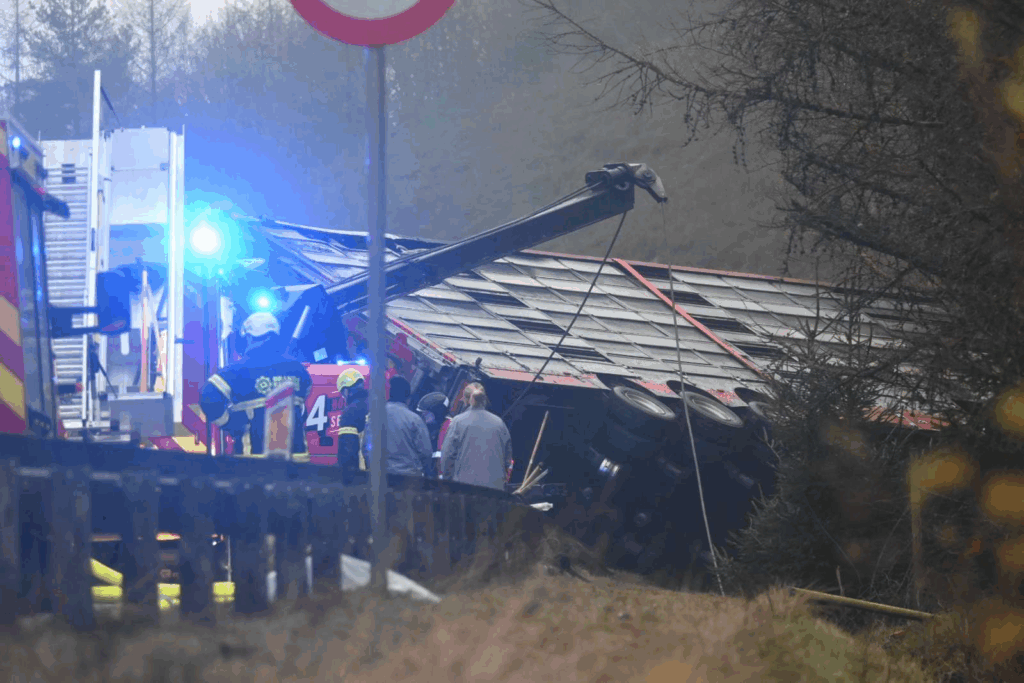 Ifølge politiet kørte de to lastvogne frontalt sammen, da den ene kom over i den modsatte vejbane. Den ene lastvogn transporterede omkring 600 grise.