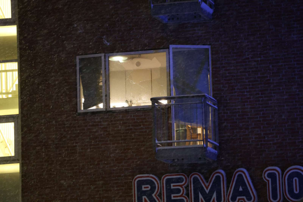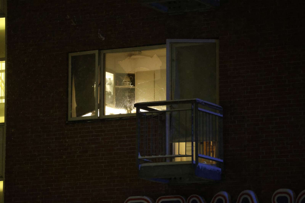 Billeder uden for lejligheden, der ligger på første sal, viser, at et vindue er blevet knust.