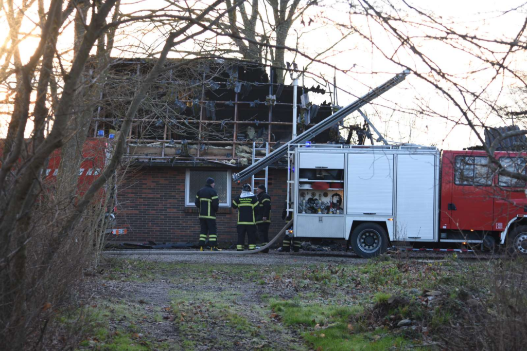 ’Politiet lander først, og de kan melde, at ejendommen er overtændt,’ siger indsatsleder Mads Ries fra Brand & Redning Sønderjylland til JydskeVestkysten.