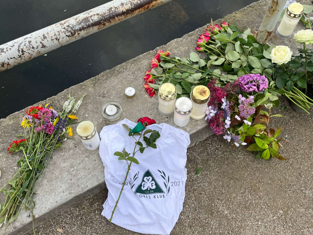 Blomster ved ulykkesstedet kort efter fundet af Jeppe – se flere billeder nederst