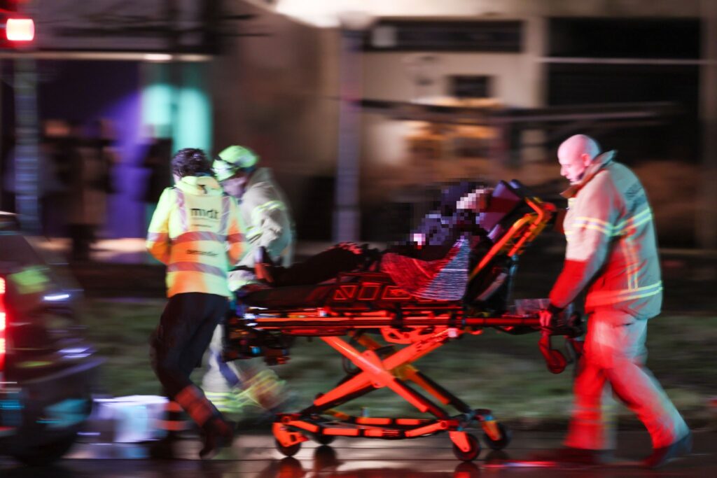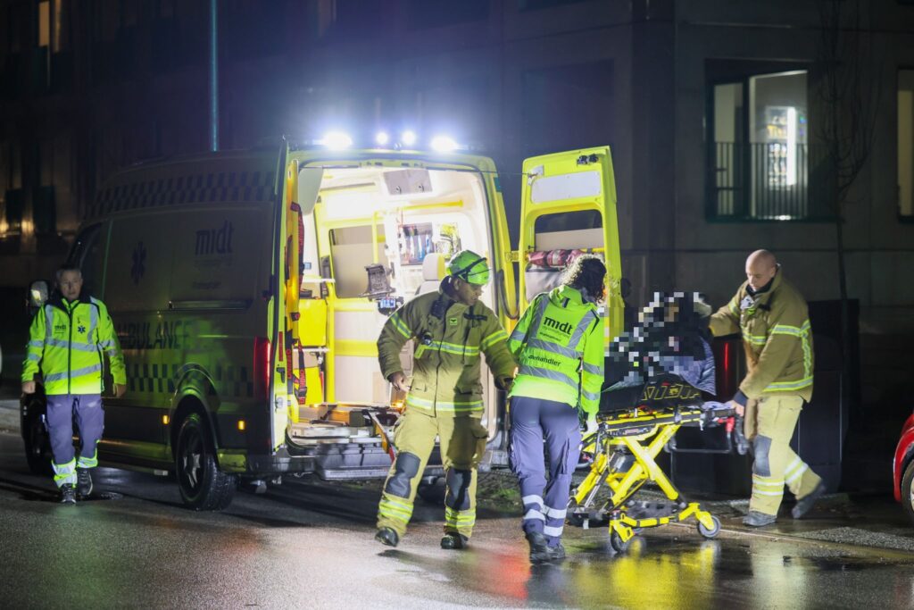 Her er en person efterfølgende blevet fragtet ind i ambulancen på en båre.