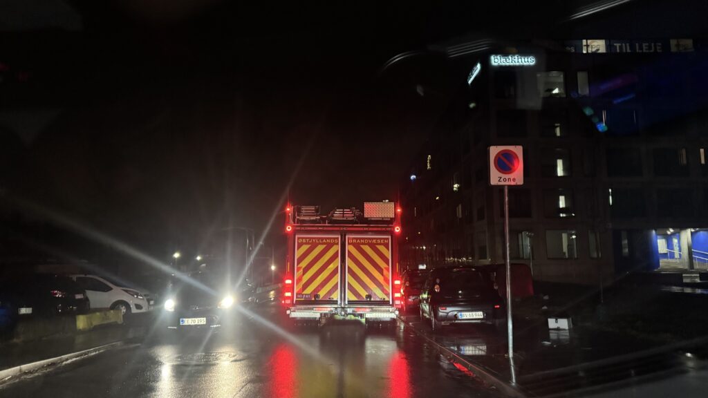 “Vi er blevet rekvireret af ambulancernes vagtcentral,” fortæller Simon Lund Bøgedam, operationschef Østjyllands Brandvæsen.