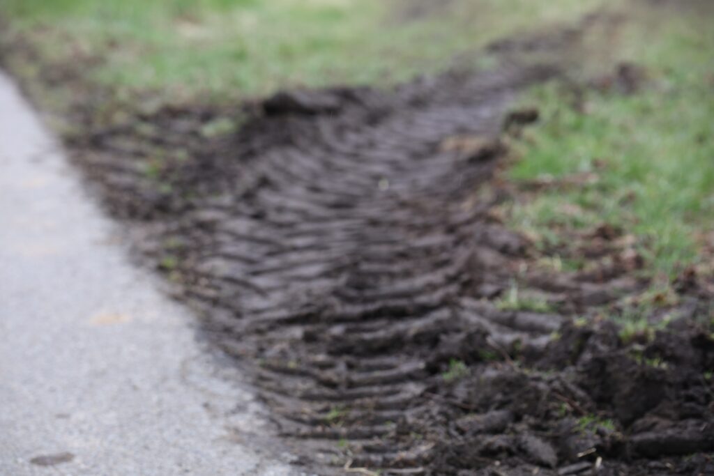 Udslippet skyldes, at hvad der ligner en gyllespreder er væltet ned på siden og ud over marken.