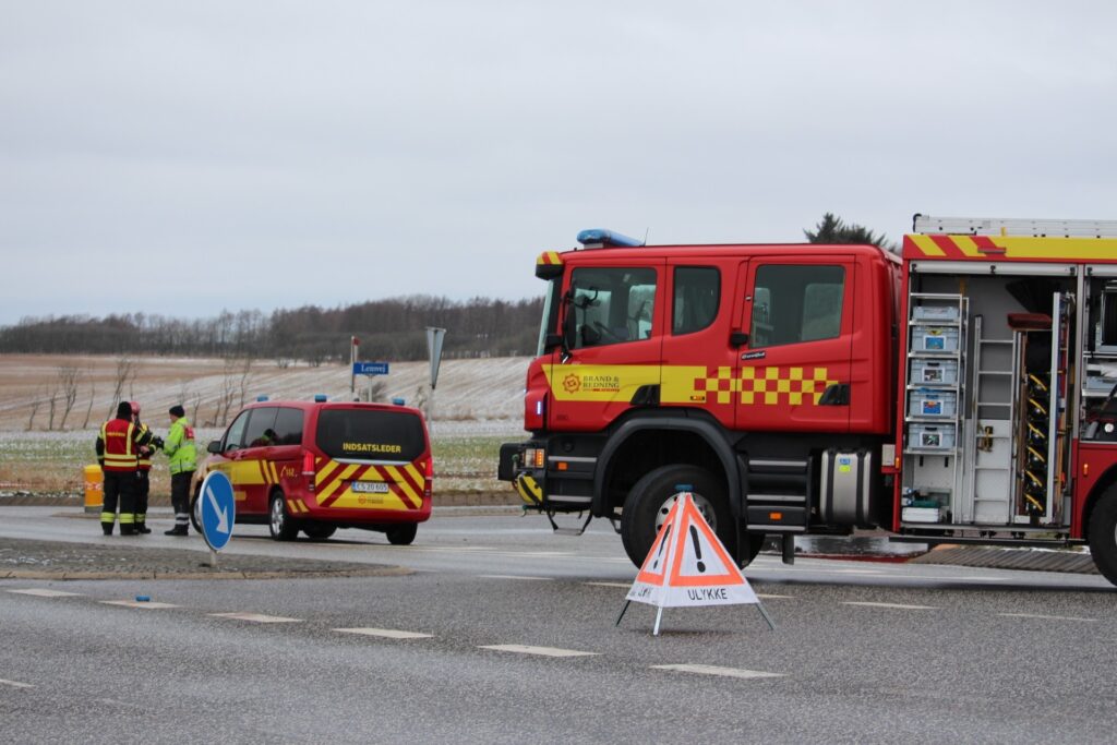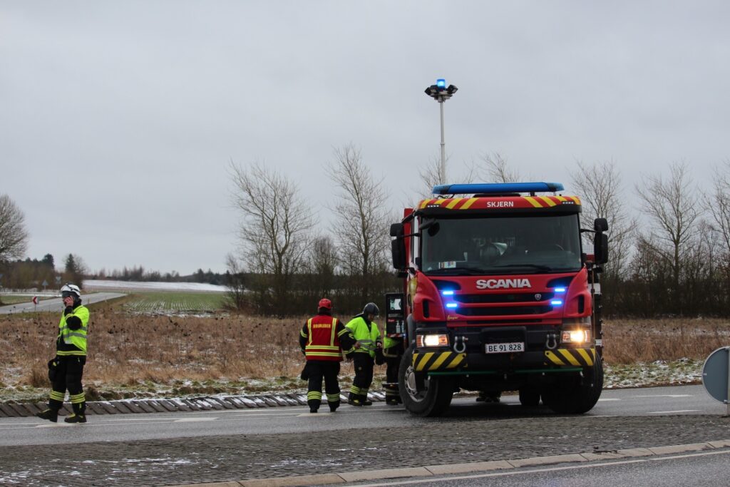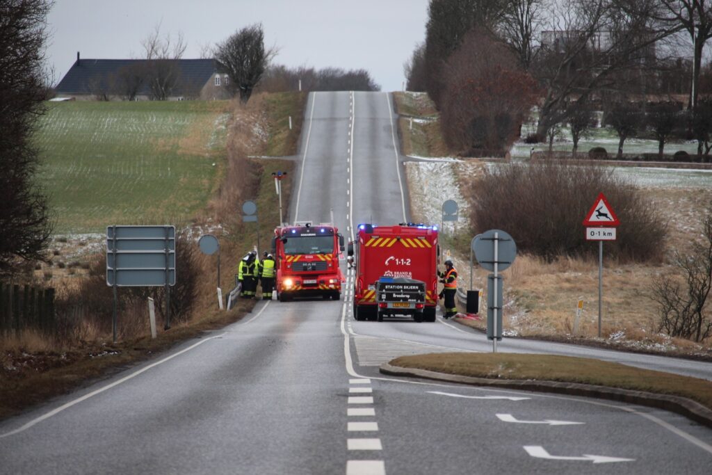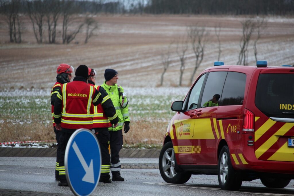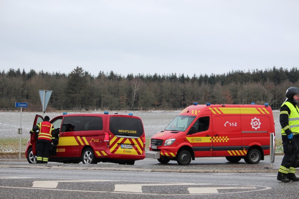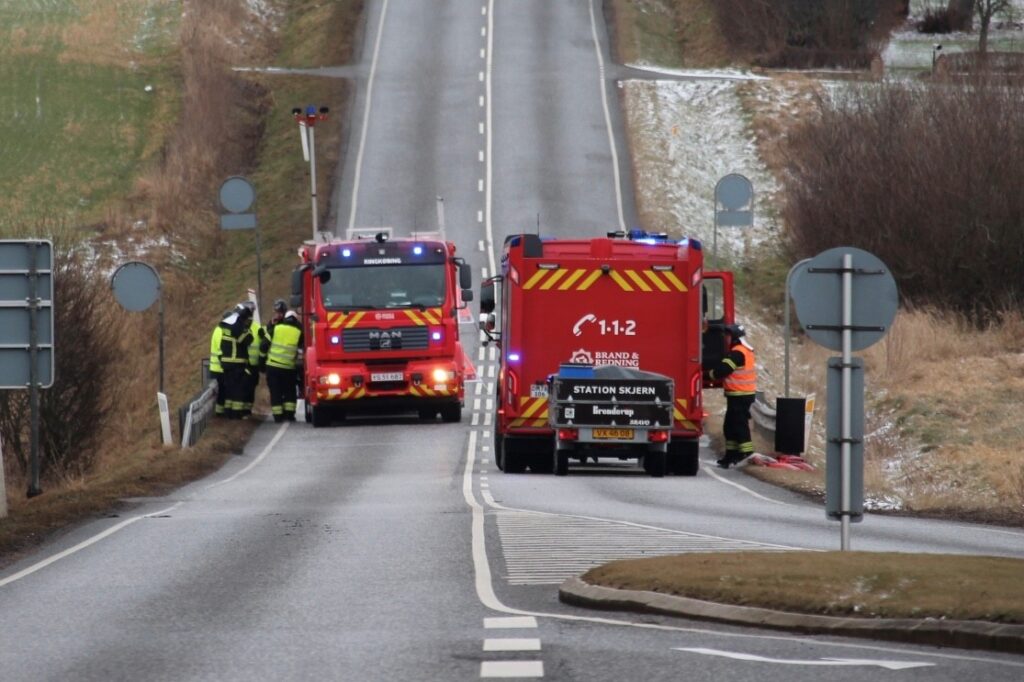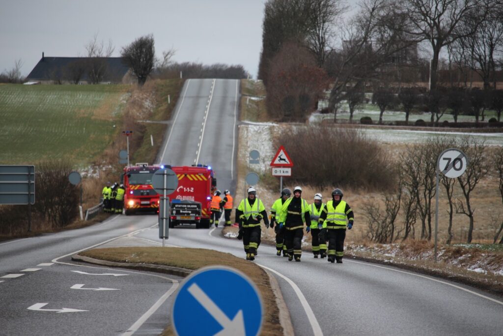 Billeder fra Presse-fotos.dk viser, at flere beredskabskøretøjer er på plads på stedet.