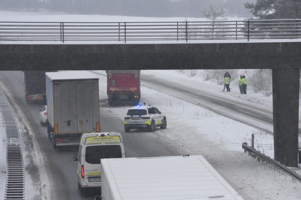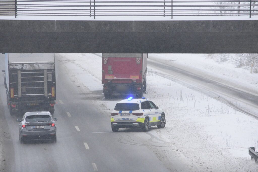 Billeder fra Presse-fotos.dks udsendte viser nemlig, at en lastbil holder på tværs af nødsporet.