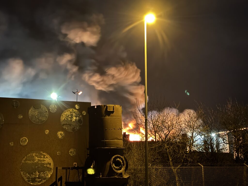 Der er natten til mandag udbrudt en brand, der skaber meterhøje flammer og en stor røgsøjle.