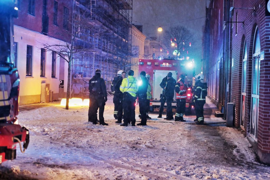 Der er ikke umiddelbart tydelige tegn på brand set nede fra gaden, men Presse-fotos.dks udsendte oplyser, at området omkring adressen er afspærret.