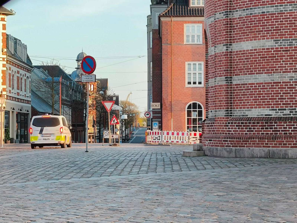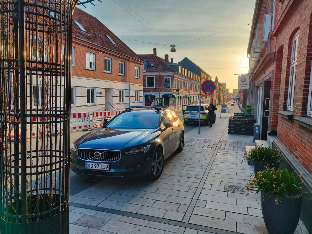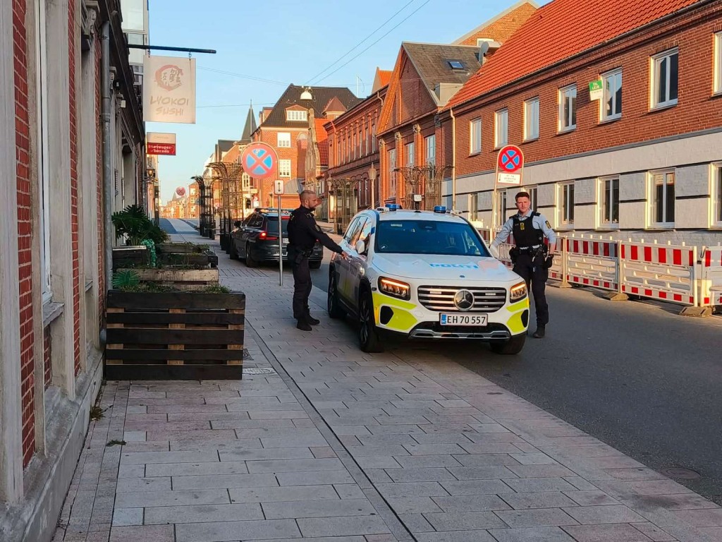 Ifølge politiet er den maskerede mand blevet set løbe i Jyllandsgade i sydgående retning mod Kongensgade.