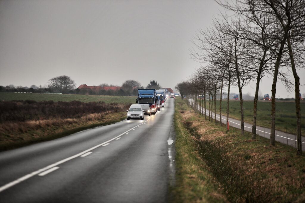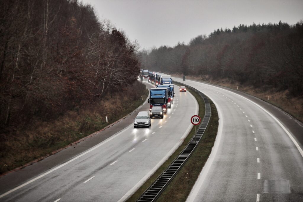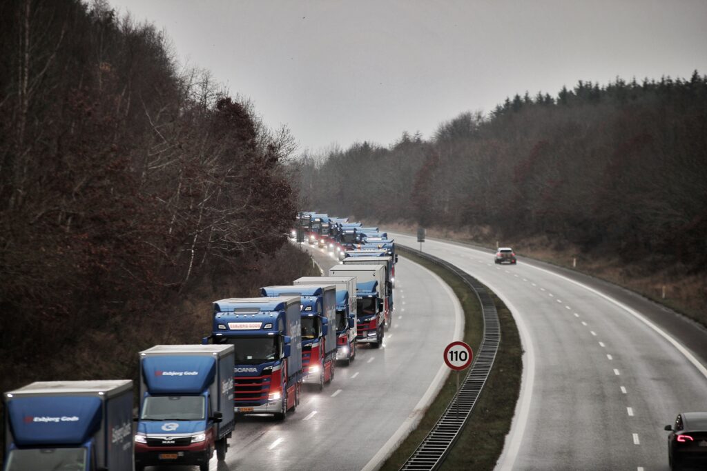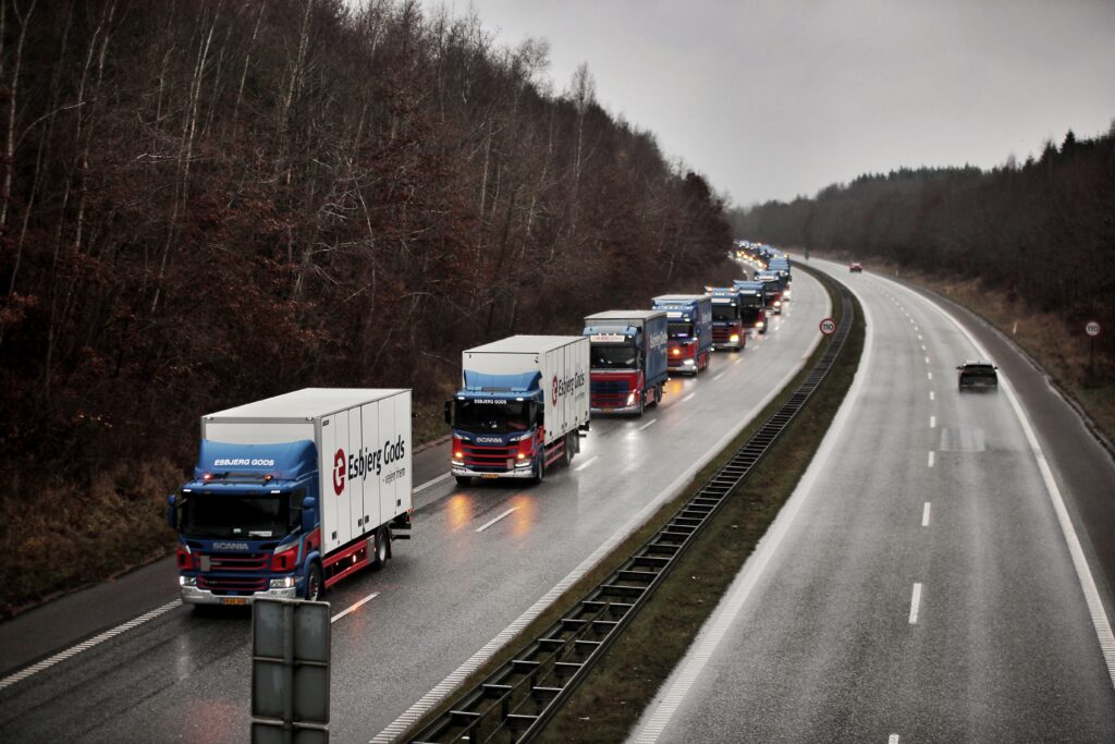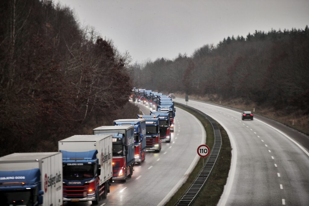 I en lang kortege kørte 40 til 50 lastbiler efter bilen, som fragtede kisten afsted på landevejen og motorvejen.