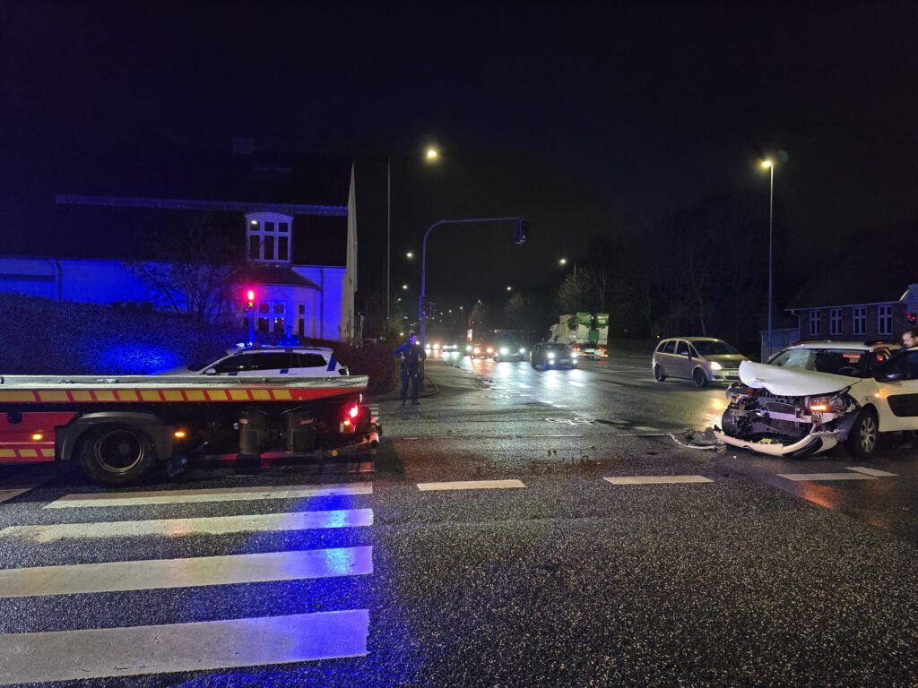 Tidligt tirsdag aften er to personbiler kørt ind i hinanden i et kryds langs Silkeborgvej i Aarhus-bydelen Brabrand.