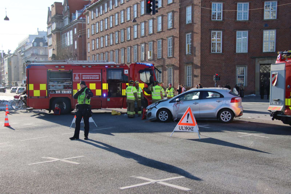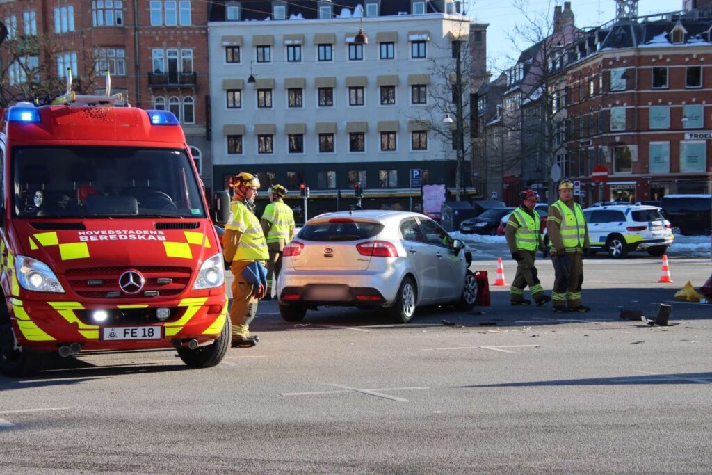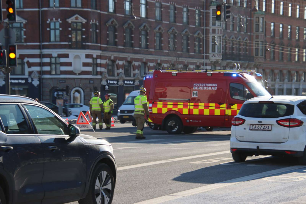 Søndag middag er Københavns Politi sammen med Hovedstadens Beredskab til stede i et lyskryds på H.C. Andersens Boulevard i det centrale København.