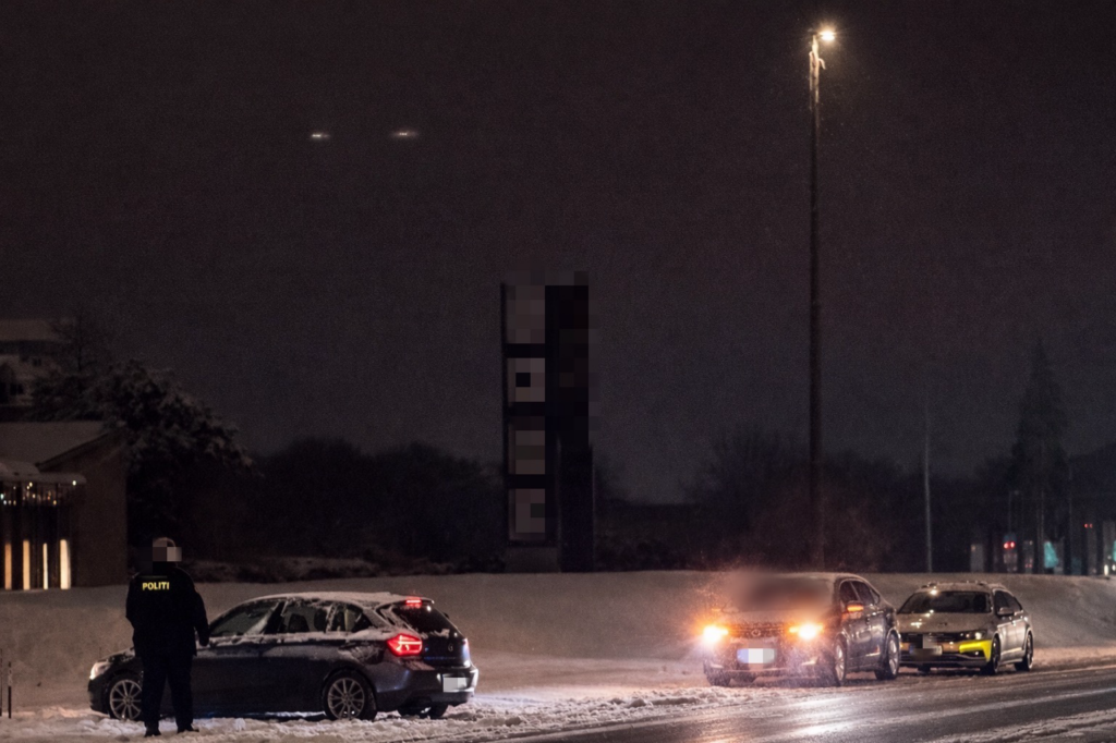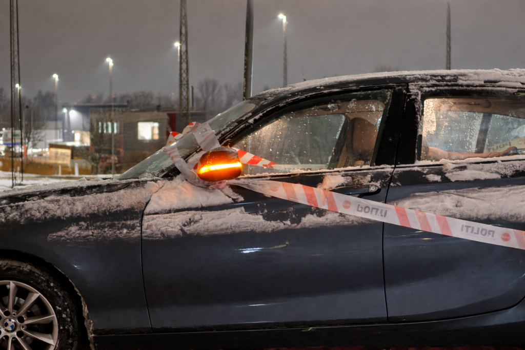 Billeder fra stedet viser, at en patruljevogn er til stede, og politiet har opsat afspærringsbånd omkring bilen.