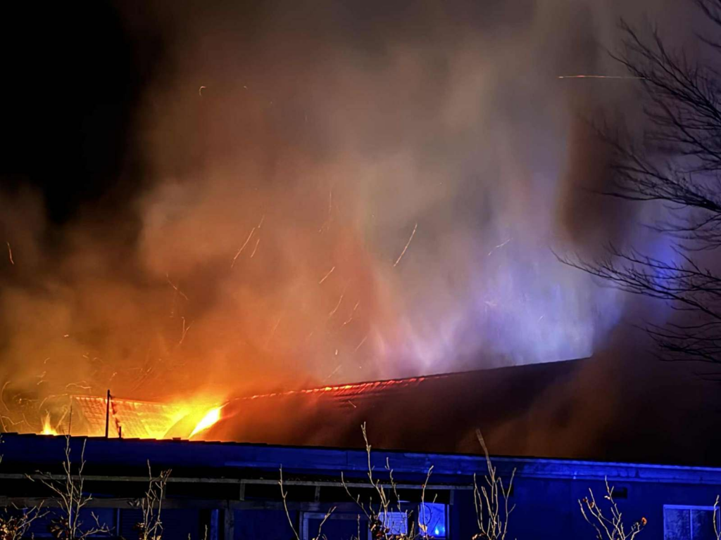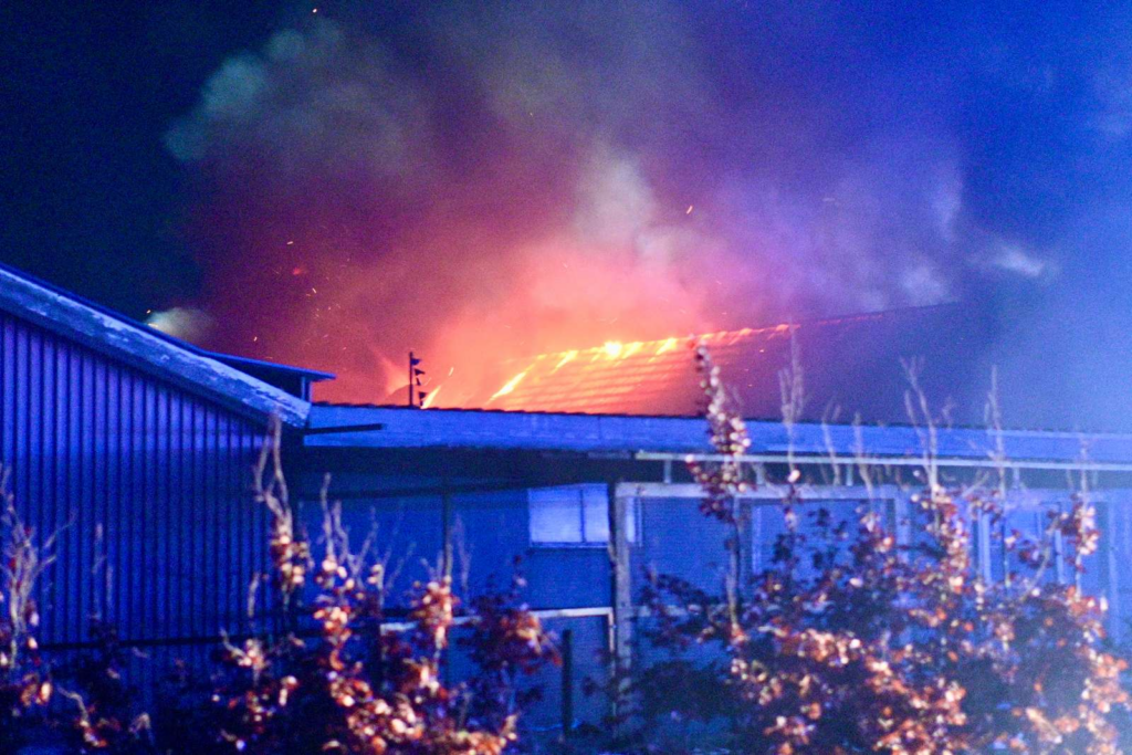 ‘Staldbygningen er overtændt, og brandvæsnet er i gang med at slukke,’ oplyser vagtchef Jan Nørrum.
