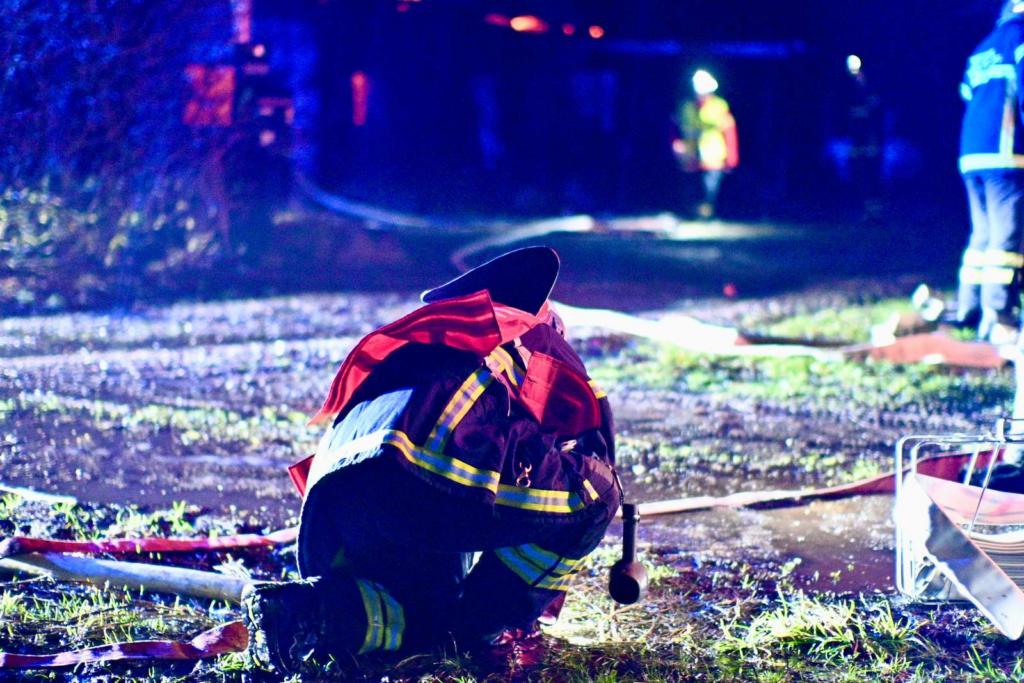 Politiet fortæller videre, at der er tale om et nedlagt landbrug, og at ejendommens hovedbygning umiddelbart ikke er ramt af flammerne. Årsagen til branden er endnu ukendt.