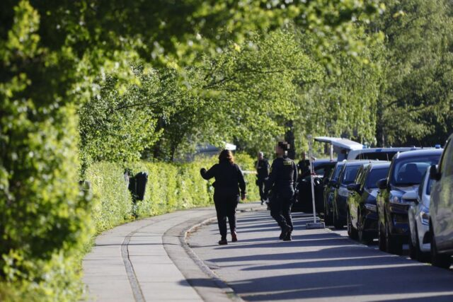 Politiet var massivt til stede, da drabet i sin tid skete – se flere billeder nederst