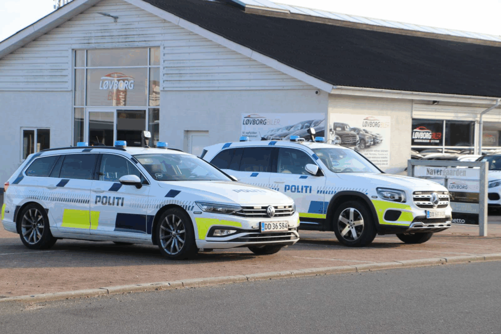 Store flammer fra en brand hærger torsdag eftermiddag bag en bilforretning. Både politibetjente og brandfolk er tilkaldt.