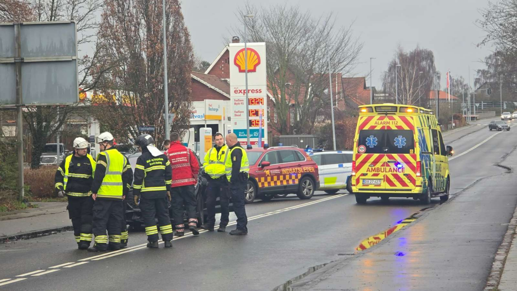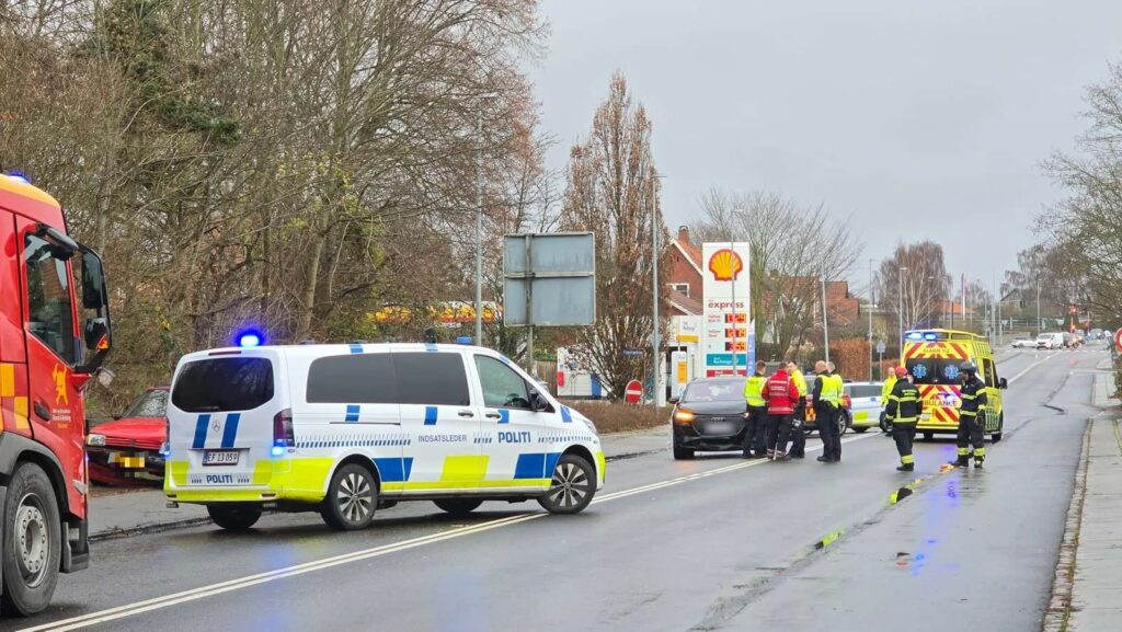 Kort efter klokken 12 skete et hårdt uheld, hvor minimum tre biler har været impliceret.