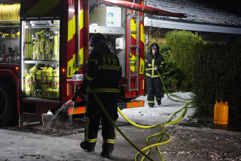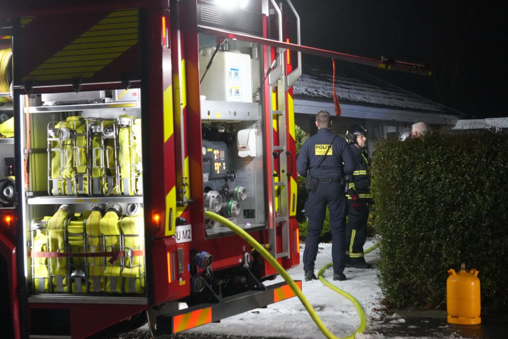 Politiet og brandvæsen rykkede massivt ud til en brand i et villahus tirsdag morgen.