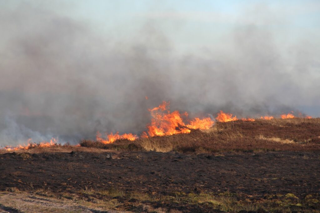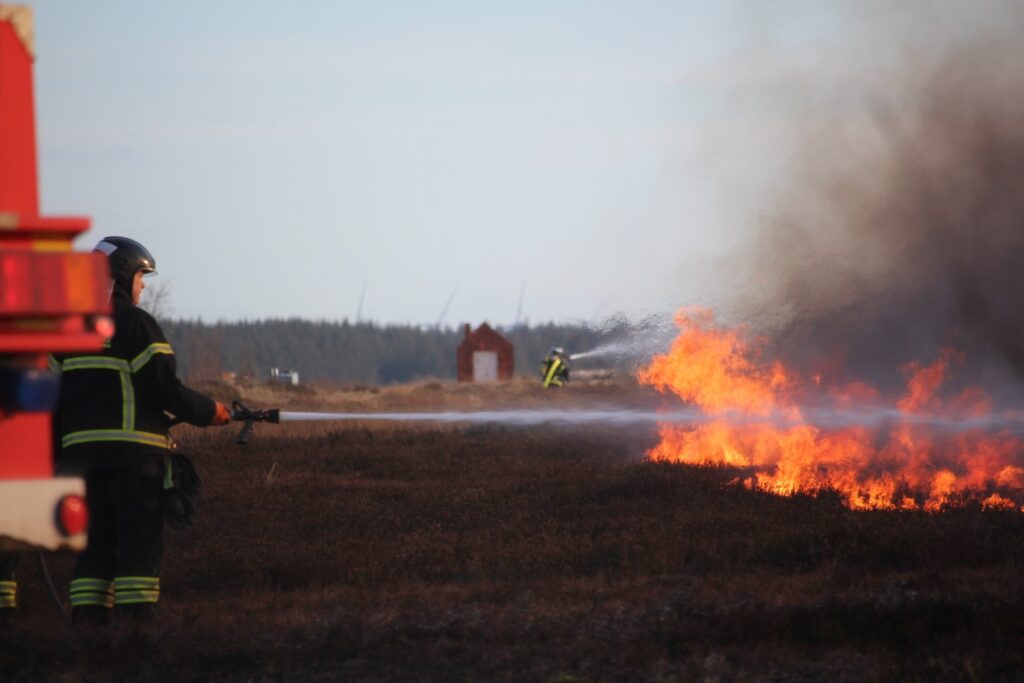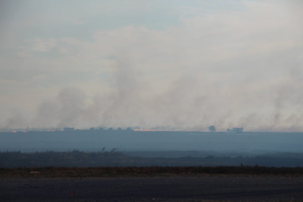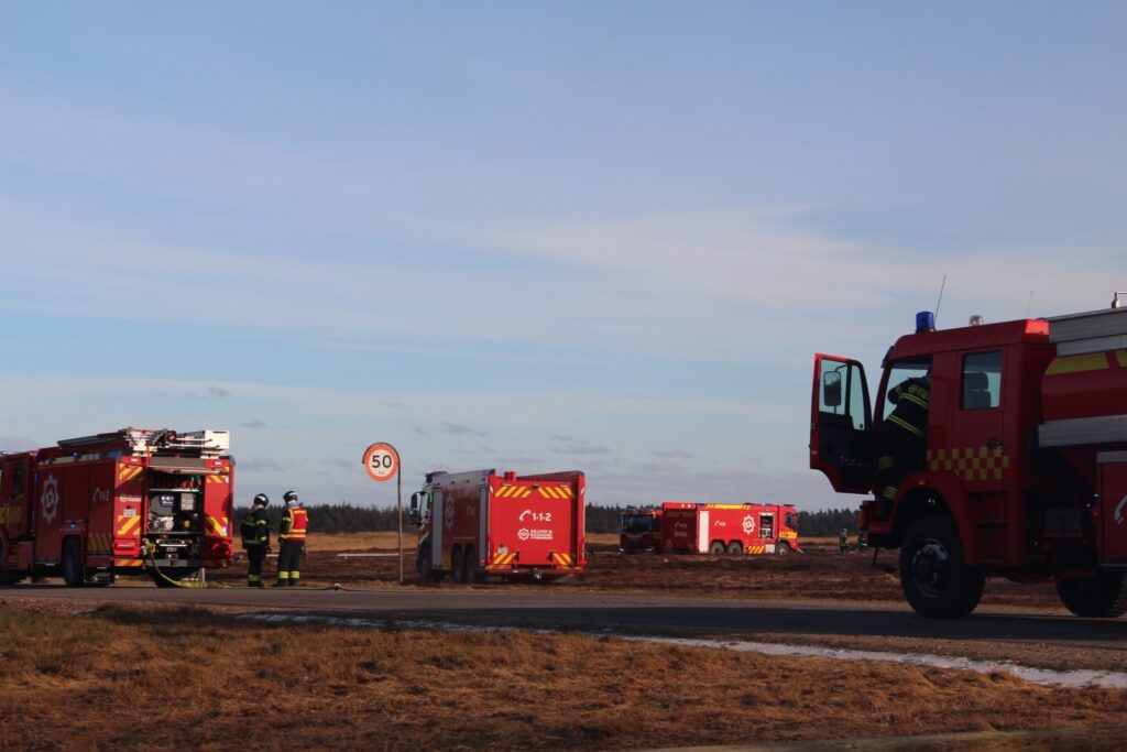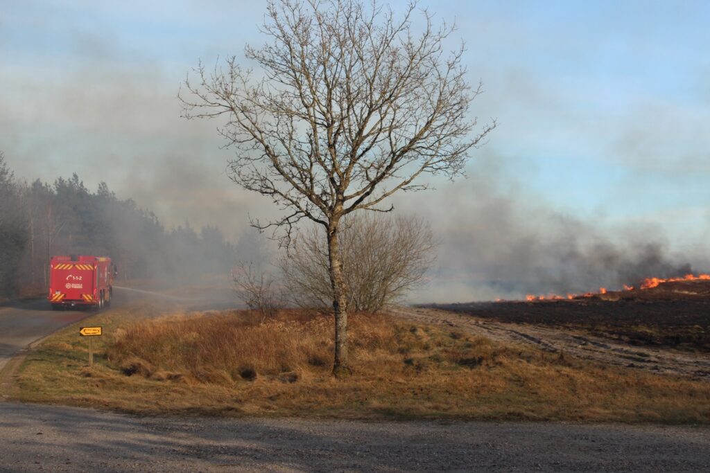 Over området hænger en tung og tæt røg, der breder sig i landskabet. Røgfanen er så kraftig, at den kan ses på kilometers afstand og har fået mange til at rette blikket mod himlen.