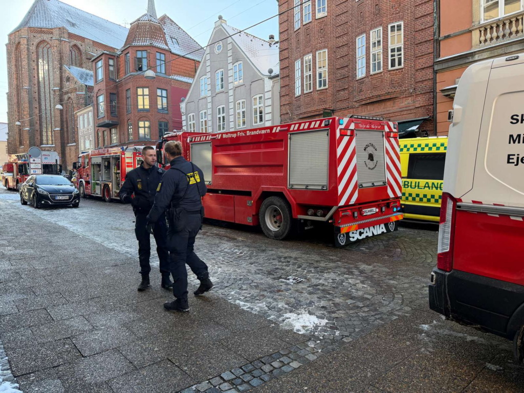 Brandvæsnet rykkede talstærkt ud, og indsatsen stod på, mens beboere blev hjulpet ud i sikkerhed.