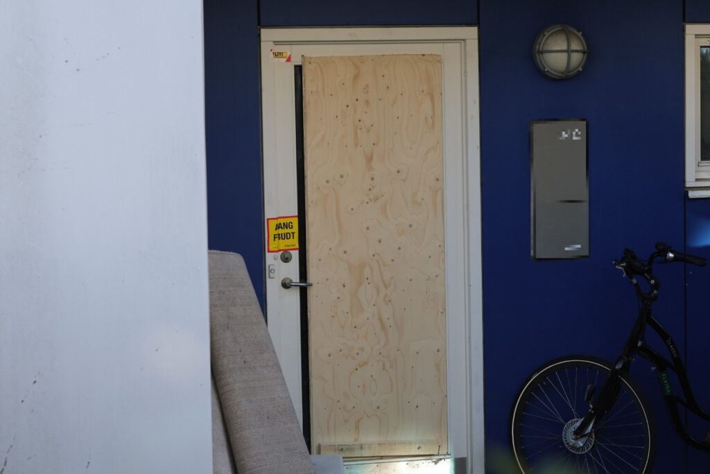 Flere skud blev affyret med denne dør – se flere billeder nederst i artiklen.