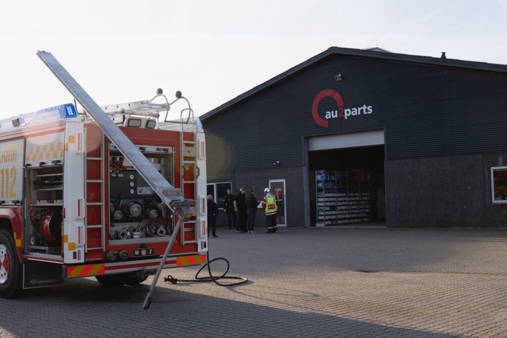 Det er ‘au2parts’, der har dannet ramme for mandskabets arbejde. Billeder fra stedet viser, at brandfolkene har fundet en enkelt brandslange frem.