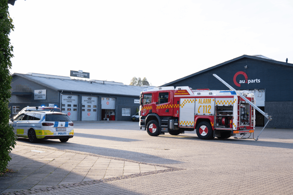 Onsdag morgen er brandvæsnet og politiet til stede ved en forhandler af bildele.
