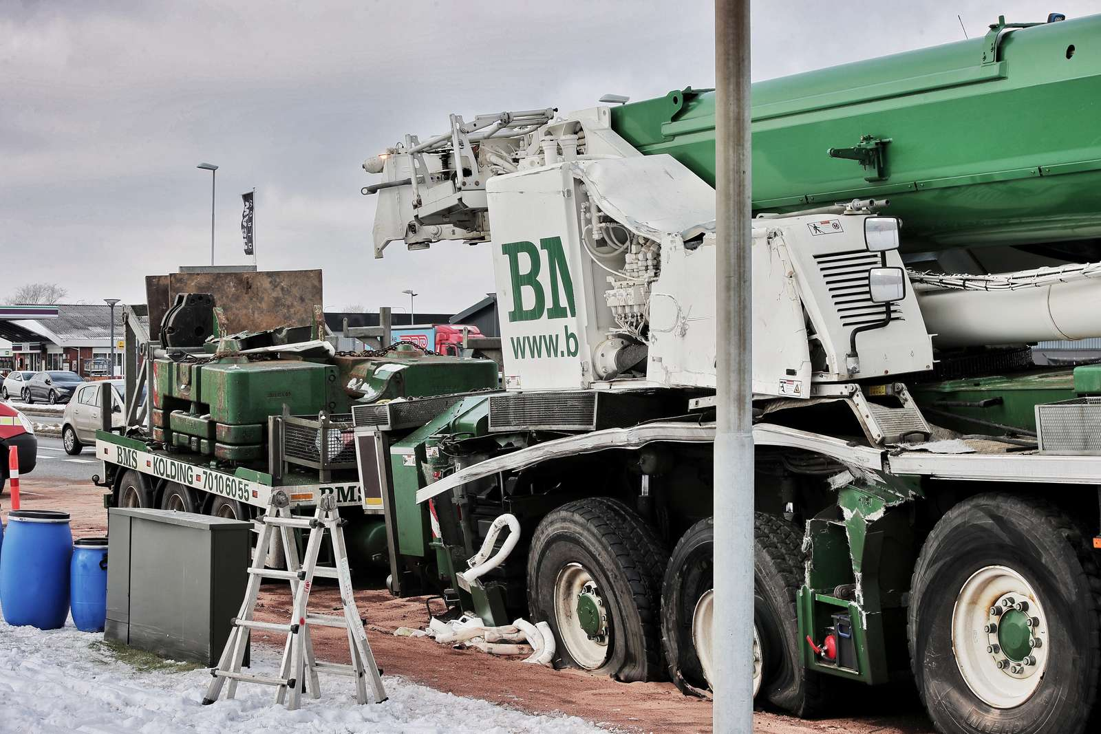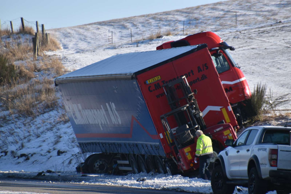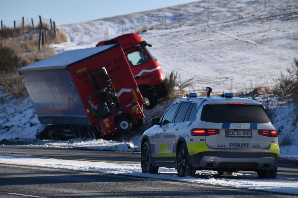 Føreren af lastbilen befinder sig fortsat på stedet.