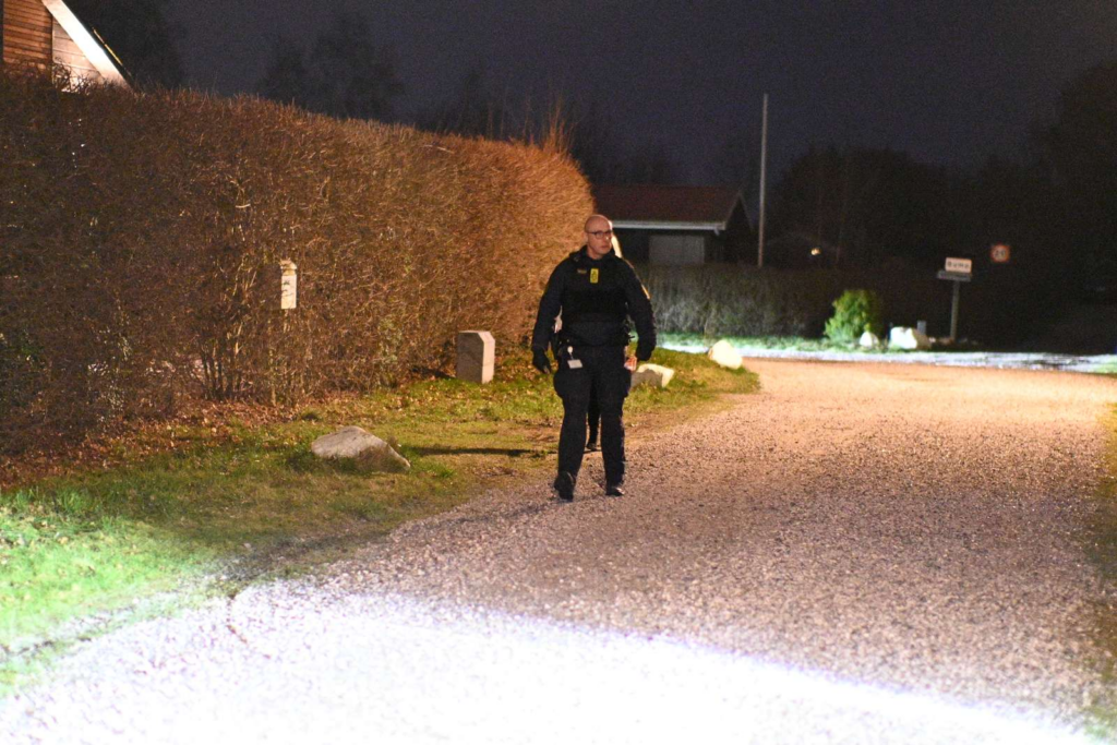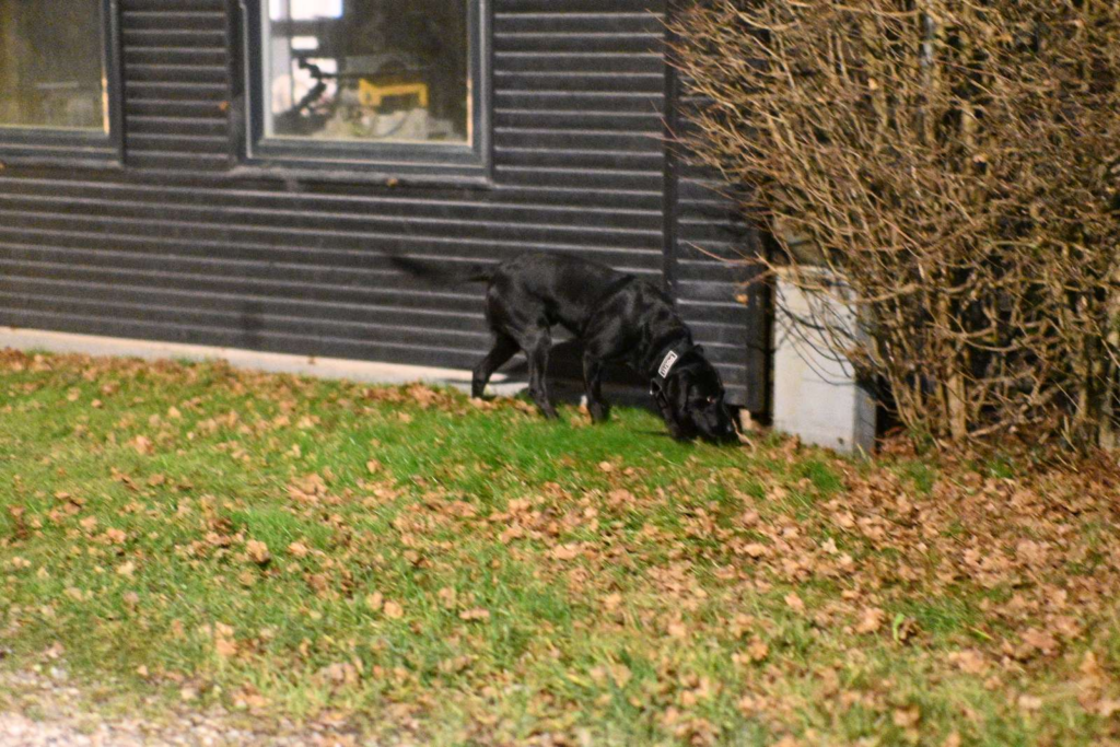 Billeder fra stedet viser, at haver, skraldespande og lignende bliver gennemsøgt af politiet, mens også politiets hunde snuser rundt i området.